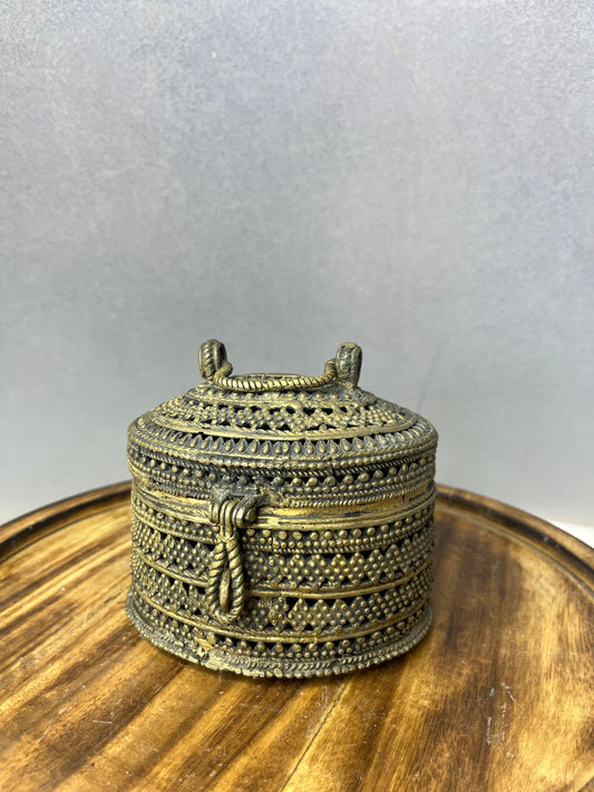 Vintage Rare Bronze cast jali box or Gowri Pettige or saligrama box